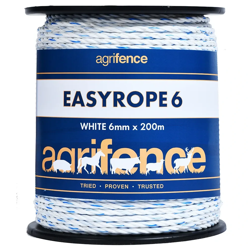 The Agrifence Easyrope 6 Paddock Rope is the ideal solution for creating shorter temporary equestrian fence lines or paddock dividers with ease and efficiency. Designed for quick setup and takedown, this durable rope ensures your horses are safely contained without the hassle of permanent fencing. Please note, it is not recommended for perimeter fences, making it perfect for flexible paddock management. Invest in the Easyrope 6 for a reliable and convenient fencing option that adapts to your equestrian needs.