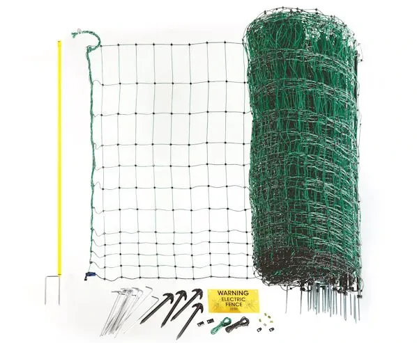 Protect your poultry and livestock with the Agrifence Poultry Net, designed for versatility and durability. This electrifiable green netting comes with 8 sturdy black plastic posts—7 built-in and 1 loose—ensuring easy setup and stability. Ideal for hens, geese, turkeys, and young lambs, the posts feature single steel spikes for secure anchoring in various terrains. Keep your animals safe and contained while allowing them the freedom to roam with this reliable fencing solution.