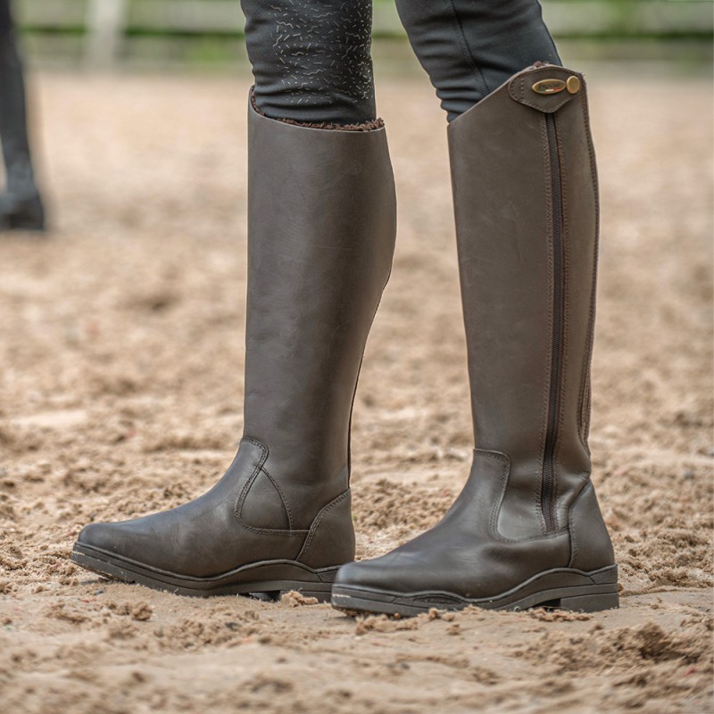 Experience ultimate comfort and style this winter with our premium riding boots, designed specifically for colder weather. Fully lined with dense faux fur, these boots effectively retain body heat while ensuring a snug fit thanks to the covered elastic panel. The full-length side zipper and zip cover adorned with the Brogini Italian badge add a touch of elegance, while the naturally water-resistant oiled leather and FL3 comfort sole provide durability and support for all-day wear. Elevate your equestrian wardrobe with these essential boots that combine functionality and sophistication...