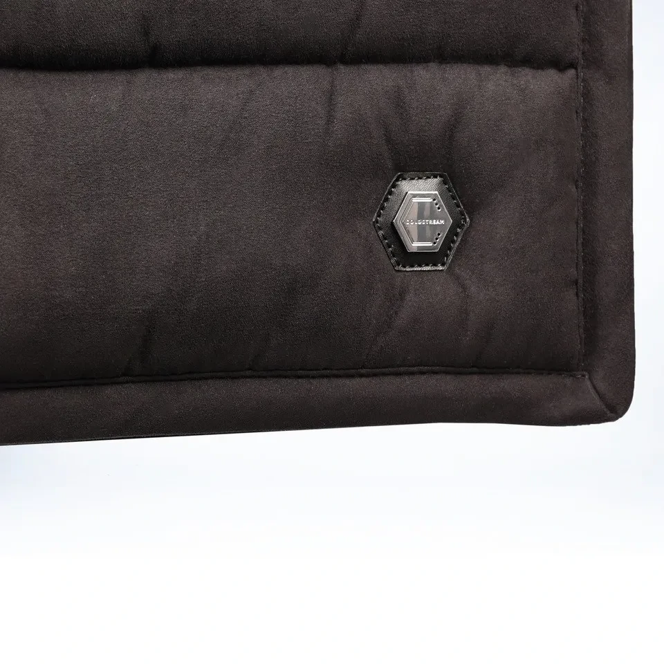 The Coldstream Belford Suede Saddle Pad features the very latest in innovative materials. The exterior designed using a tactile suede that not only looks and feels good but is incredibly impervious, making this an ideal saddle pad for long-lasting style and durability. Lined with a CoolMax fabric that assures optimal moisture management, ideal for when your horse is working hard to control sweat dispersion. The thick technical filling ensures that the pad will aid with shock absorption of the back and shoulders and helps create an even pressure distribution, which assists with alleviating pressure points under the saddle for optimum comfort for your horse. The technical fabrics and filling are fully breathable and lightweight.The contemporary CS-grip system features along the top of the pad to helping to reduce unwanted movement and slipping. This is turn reduces friction, thus improving comfort and reducing heat build-up. Finished with a luxury silver metal Coldstream badge with leather backing, subtle tonal stitching and practical girth loop for additional security.