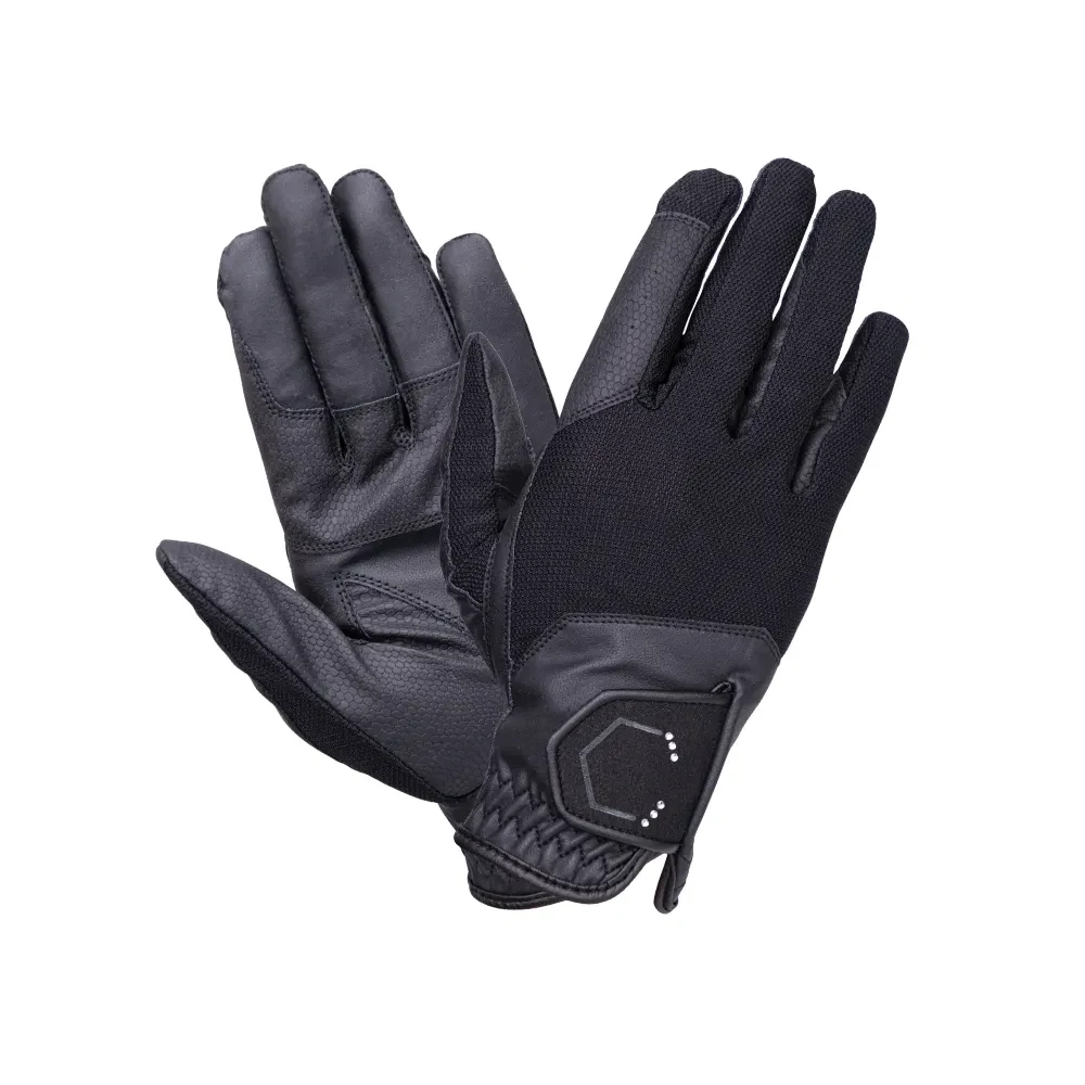 Technically designed, the Blakelaw Diamante Riding Gloves provide a close contact fit and feel, delivering unrivalled flexibility and movement. The carefully crafted fine mesh outer increases ventilation, keeping your hands cool and comfortable, while grip enhancing material across the palm, thumb and fingers offers advanced grip and protection from the reins. Featuring an elasticated wrist and touch tape fastening for a supportive fit, they are beautifully finished with delicate diamanté Coldstream detailing. Engineered for performance, these lightweight gloves are perfect for the active rider.