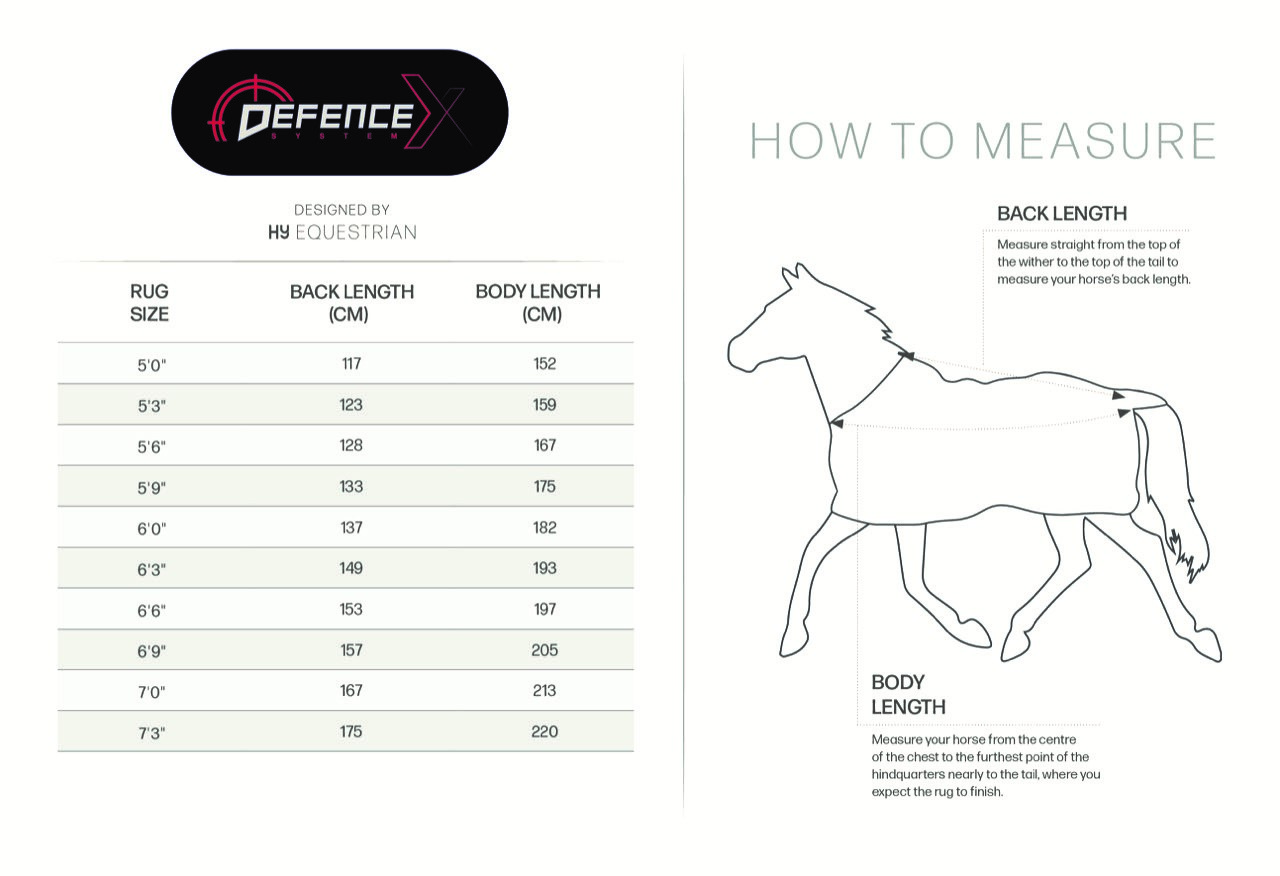 The elite DefenceX Shield turnout rug is a high specification rug that has been expertly crafted from a ballistic 1200 denier waterproof and ripstop material to offer ultimate protection. This 50g rug is perfect for when a lighter layer is needed to protect your horse from the inclement weather. Featuring a snug fit detachable neck with double locking touch tape fastenings for an easy yet secure attachment, that includes an elasticated poll to reduce wind chill and provide a cosy fit. An innovative specially shaped tail flap offers ultimate coverage from rain and wind, detailed with reflective detailing, as well as on the body of the rug and neck to optimise visibility in low light conditions. The mid-rise, generous shoulder gusset allows for a full freedom of movement and padded wither has been expertly designed to guarantee comfort by aiding with alleviating pressure off the wither. The deep cut design is securely fastened with adjustable cross surcingle’s with elasticated inserts and twin buckle clip chest fastenings for stability and to offer the perfect fit. Finished with the choice of wipe clean fillet string and adjustable leg straps, so the rug can be tailored to suit each individual horse.