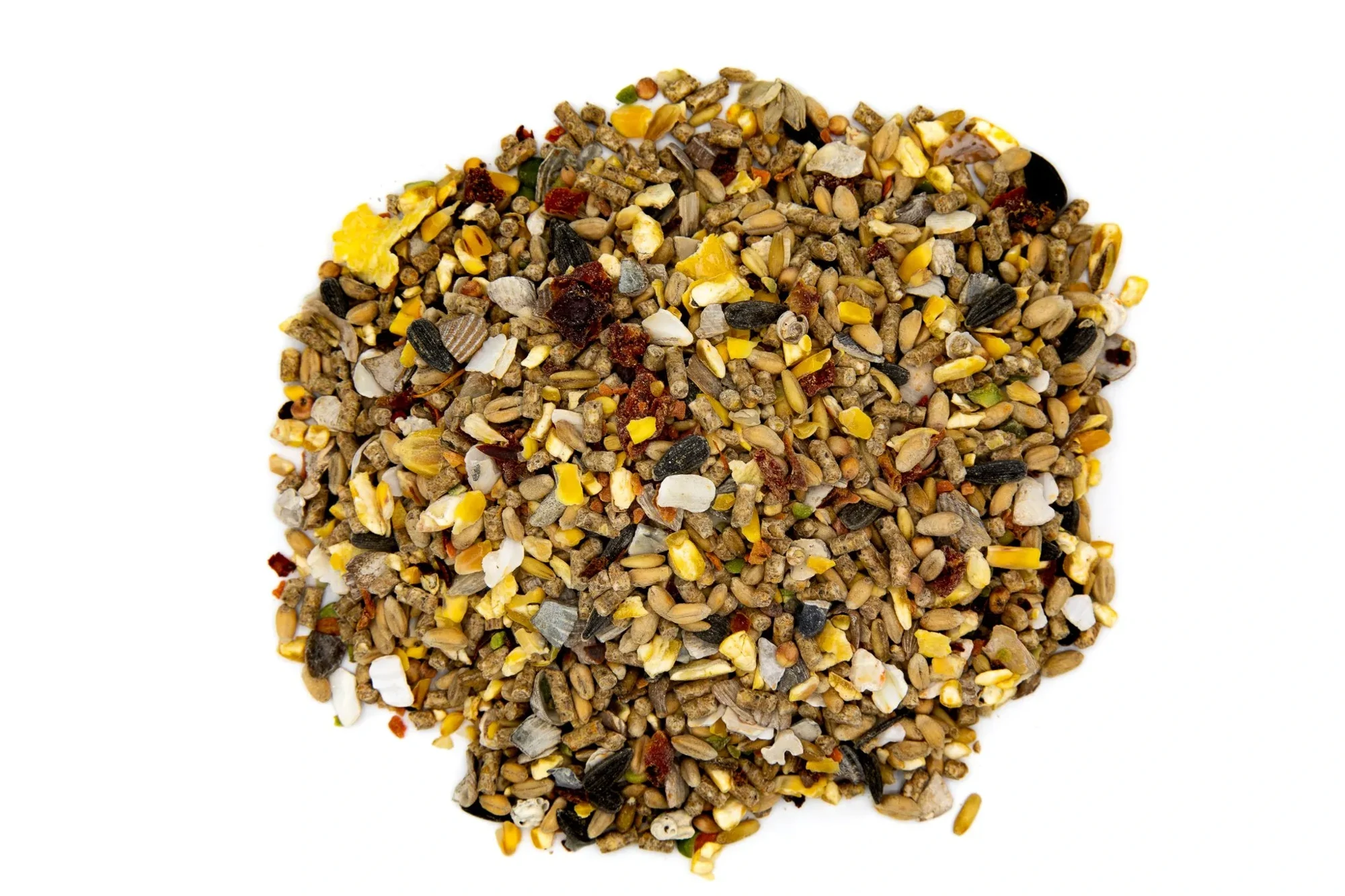 Indulge your pets with our premium seed and grain mix, a delightful blend of wheat, maize, red dari, sunflower seeds, black sunflower, oyster shell, and flaked maize. Enhanced with nutritious carrot, pepper, and chilli, this mix not only satisfies their taste buds but also supports their overall health. Ideal for an afternoon treat, this wholesome combination ensures your pets receive essential nutrients while enjoying a flavorful snack. Treat them to the best and watch them thrive!