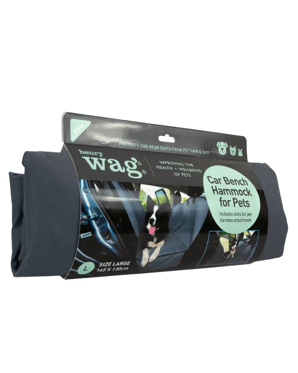 Provides a safe environment for dogs when travelling in the back to stop them from falling off the seat into the footwell. It also protects back seats from pet hair, dirt and dust. Made from durable, machine washable fabric with adjustable straps and quick connect snaps to wrap around front and rear headrests. Also includes side straps to loop around the overhead handles to keep the side panels in position, storage pockets for snacks and accessories and can be folded when not in use. It features access slots for securing pet harnesses to the seatbelt buckles.
