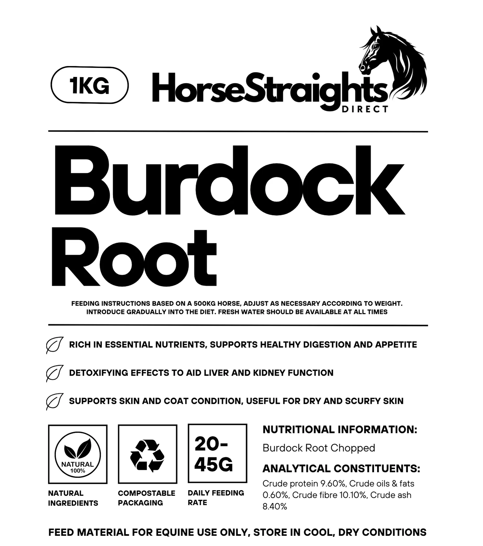 Burdock Root For Horses 100% Natural Horse Supplement. Premium Quality Horse Herbs Equine Supplements in 100% Compostable Packaging Horse Straights Direct Burdock Root - Tested for Equine Use Only
