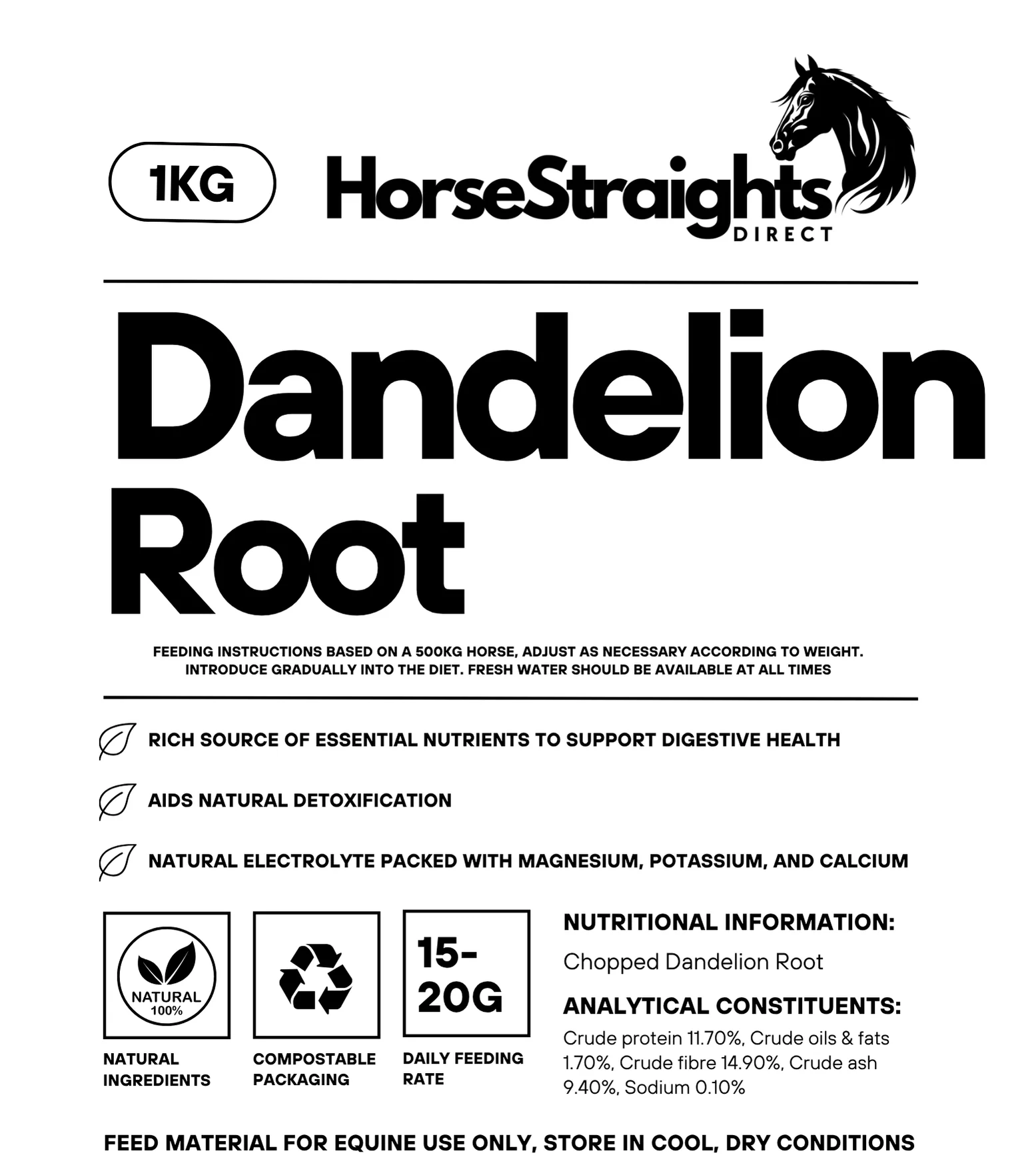 Dandelion Root For Horses 100% Natural Horse Supplement. Premium Quality Horse Herbs Equine Supplements in 100% Compostable Packaging Horse Straights Direct Dandelion Root - Tested for Equine Use Only