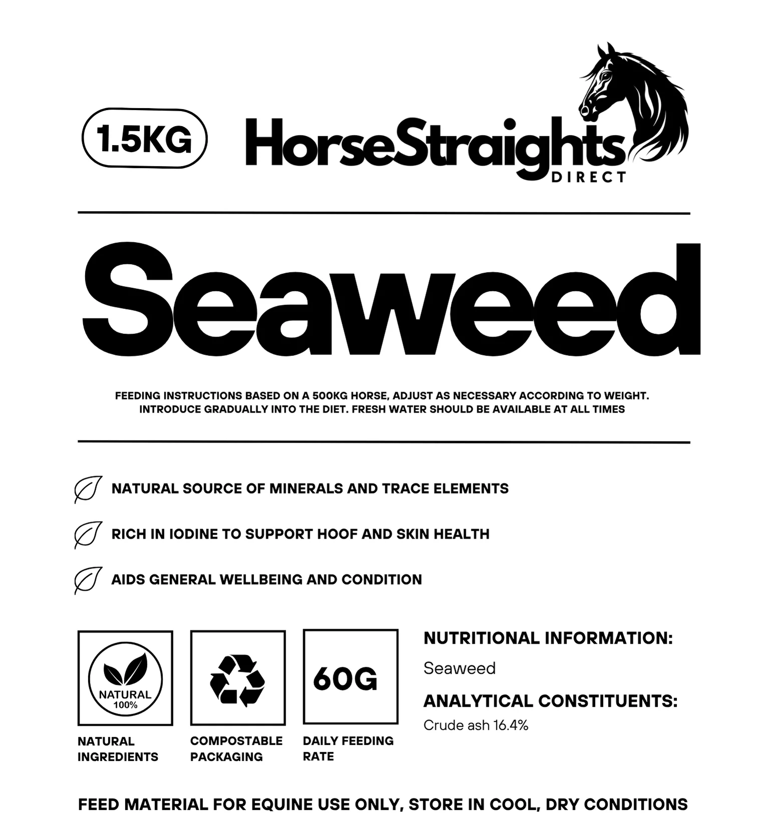 Seaweed For Horses 100% Natural Horse Supplement. Premium Quality Horse Herbs Equine Supplements in 100% Compostable Packaging Horse Straights Direct Seaweed - Tested for Equine Use Only