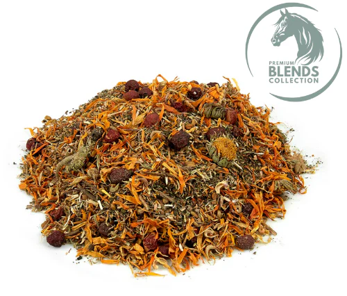 This premium blend includes a selection of high-quality ingredients including Nettle, Hawthorn Berries, Fenugreek, Cleavers, Seaweed, Burdock Root, and Marigold. Each ingredient has been carefully chosen for its beneficial properties, helping to support overall health, vitality, and well-being in senior horses.