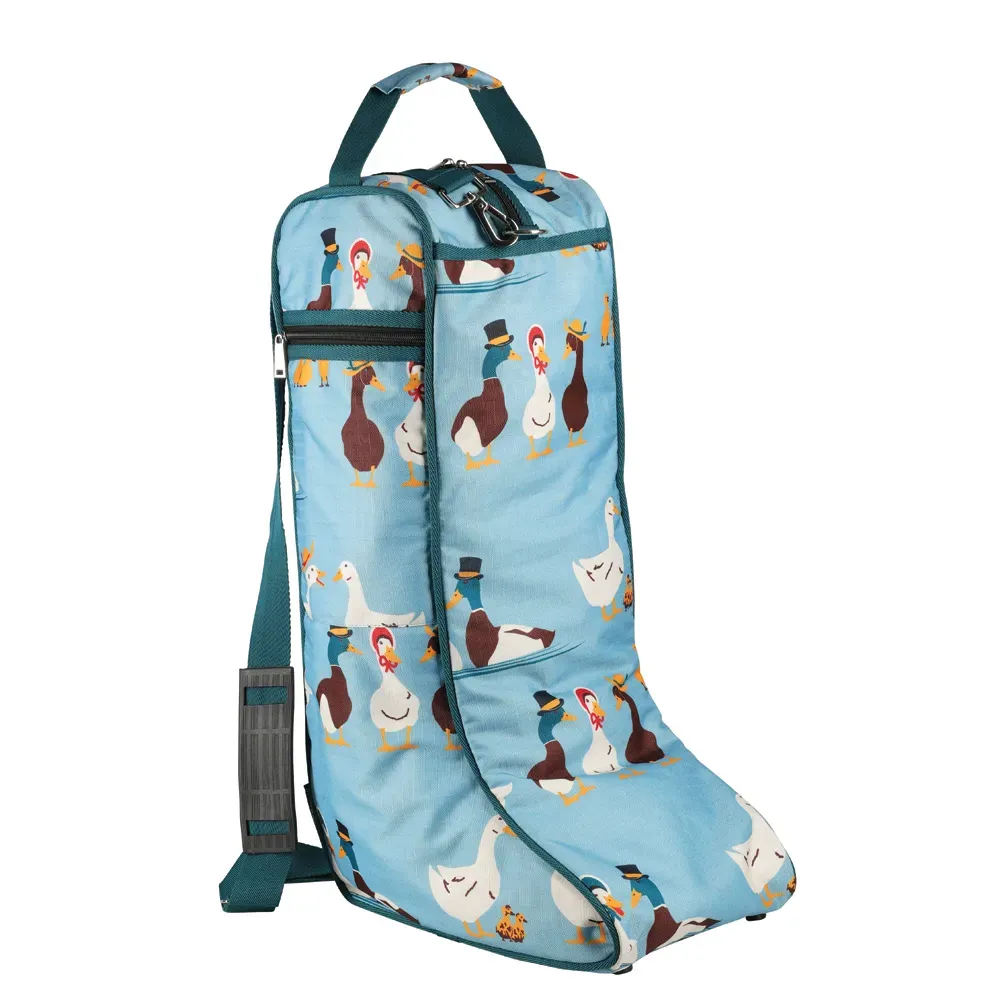 Protect your boots in style with the limited edition Ay Up Duck print boot bag, crafted from durable ripstop and waterproof materials. This functional accessory features a secure double zip fastening, a convenient zip side pocket for additional storage, and both a grab handle and an over-the-shoulder carry strap for easy transport. Keep your long boots dry and clean while showcasing your unique taste, and don't forget to explore the rest of the collection for a complete look.