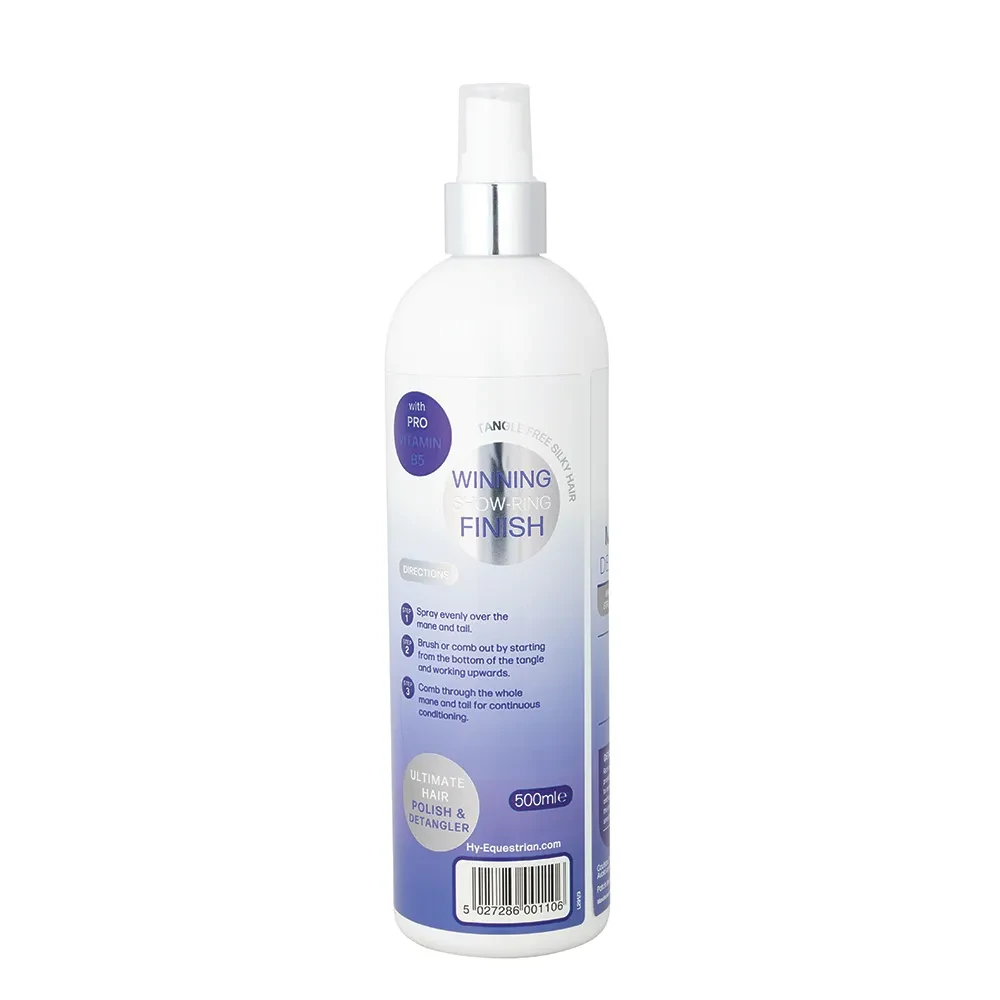 Experience the magic of effortless grooming with Hy Equestrian Magic Finish Detangler. This enhancing conditioner is specially formulated for manes, tails, and coats, enriched with silk proteins that make tangles a thing of the past. Nourish your horse's coat, leaving it smooth, sleek, and radiantly shiny in no time. Perfect for achieving that all-over polished look, this detangler is a must-have for any equestrian. Remember to perform a patch test before use to ensure the best results.