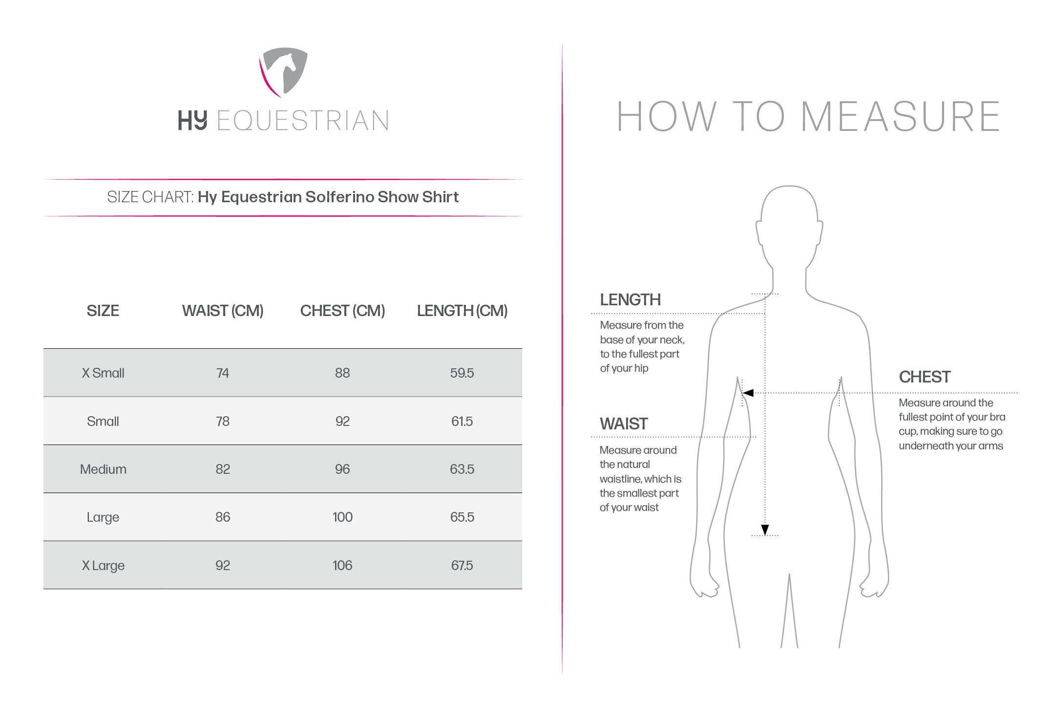 Elevate your equestrian wardrobe with the Hy Equestrian Solferino Show Shirt, expertly designed for the dedicated athlete. This high-performance shirt features moisture-wicking fabric that ensures optimal breathability and ventilation, keeping you cool and comfortable during competitions. The elegant stand-up white collar, secured with a discreet zip and adorned with delicate crystal detailing, adds a touch of sophistication. With sculpted stitching that flatters your silhouette, this show shirt is the perfect choice for making a stunning impression in the ring.