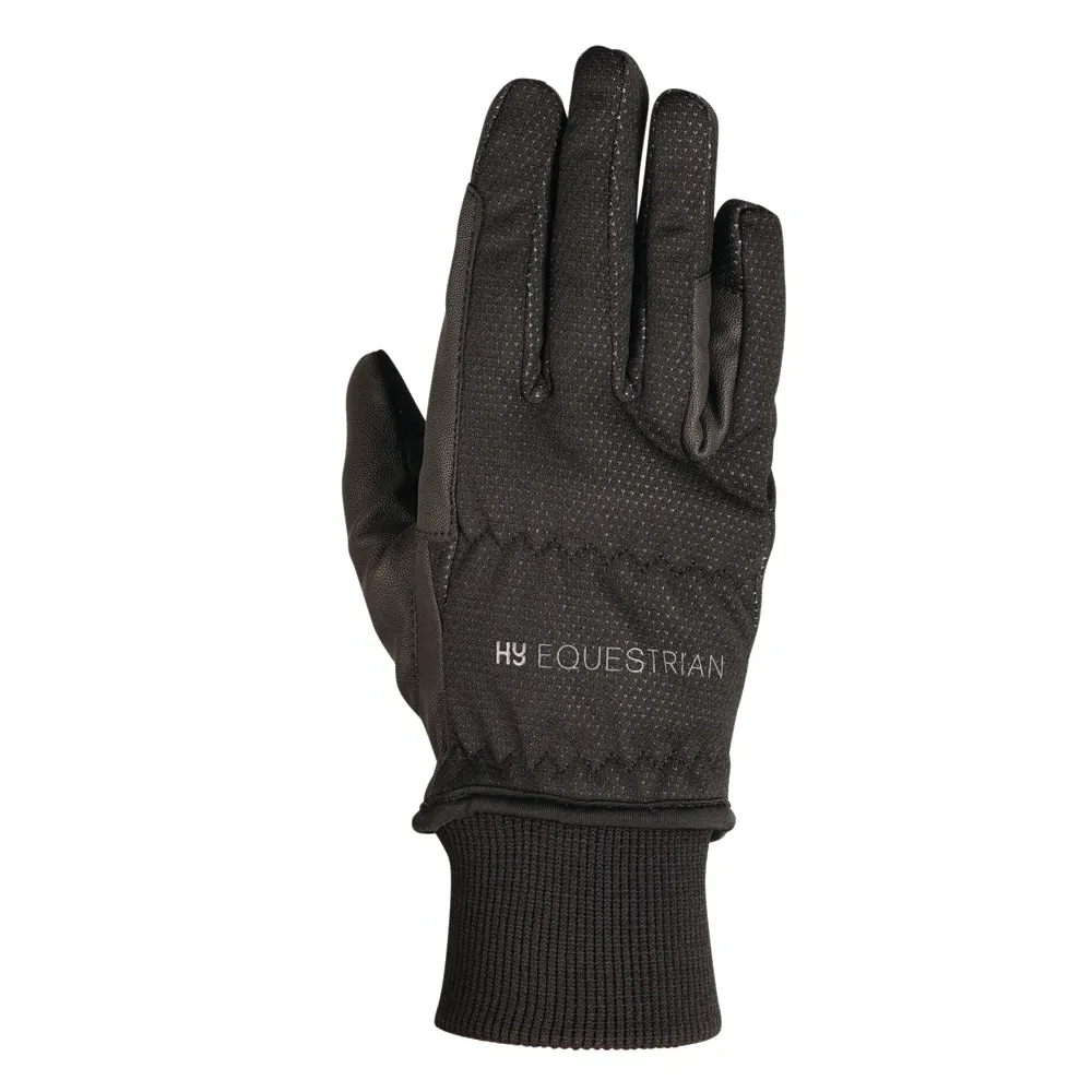 Keep your hands warm with these smart winter gloves! Featuring a long, fully elastic cuff to keep the glove snug to your wrists, the cold wind is effectively kept out. A 40g Thinsulate inner lining retains heat, whilst the grip palm and reinforced rein fingers ensure a secure grip on the reins. The gloves are enhanced with the addition of touch screen compatible finger tips to keep your hands warm - even when typing! A smart finish is achieved with the embroidered Hy logo.