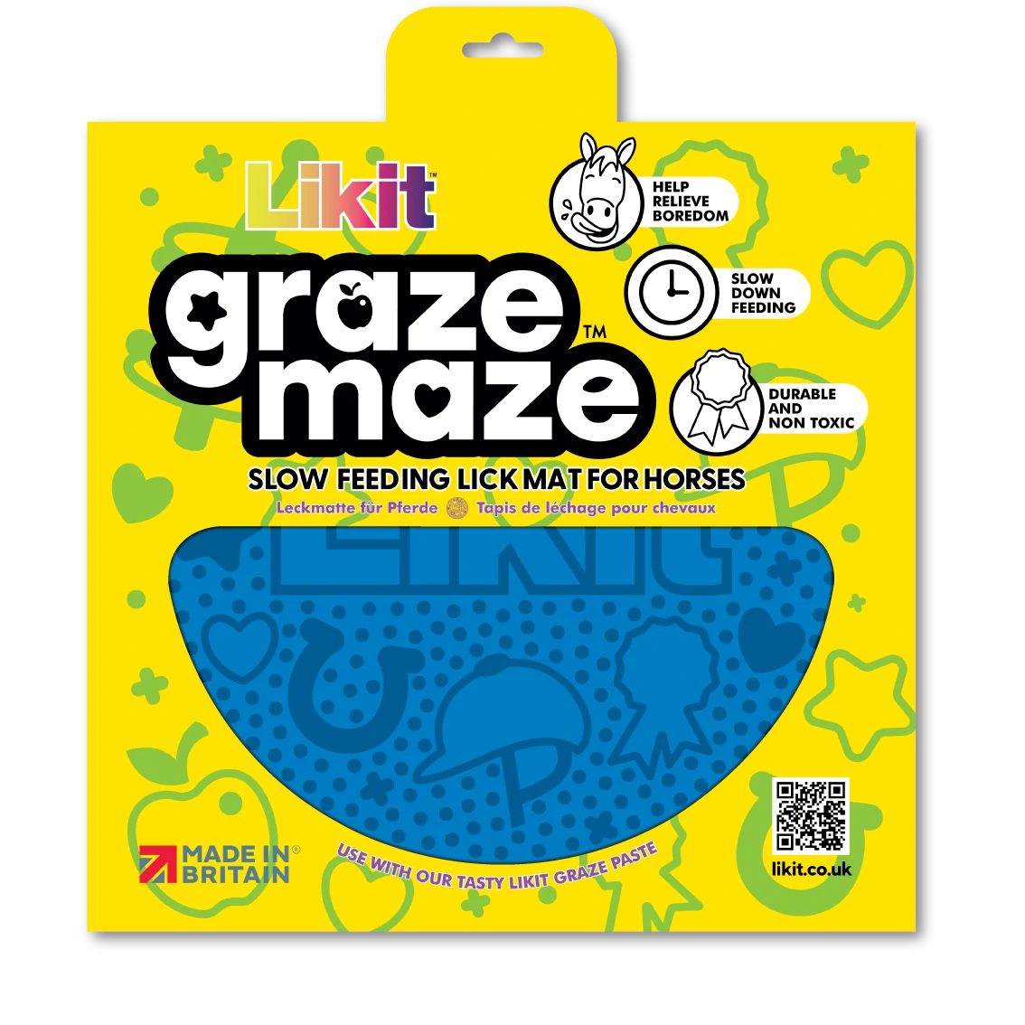 Likit Graze Maze, the ultimate slow feeding lick mat designed specifically for horses. This innovative product allows you to easily spread our delicious Likit Graze Paste and add your choice of feed or treats, creating a customizable and engaging feeding experience. Whether you place it in your horse's feed bucket or use it as a slow feeder, the Likit Graze Maze promotes healthy eating habits while keeping your horse entertained for hours. Elevate your horse's feeding routine with this versatile and stimulating accessory.