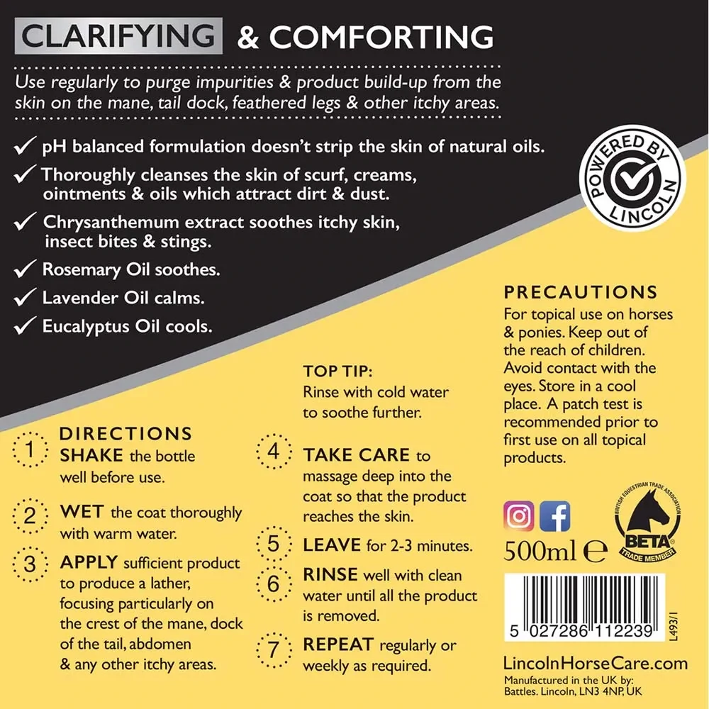 More than just a shampoo! An ‘anti-rub’ cleanser formulated for use regularly from March through to November, or whenever Midges first appear. The pH balanced formulation of Chrysanthemum extract, Rosemary Oil, Lavender Oil & Eucalyptus Oil can be used frequently without drying the skin. Regular use clarifies, removing dead skin & scurf, thoroughly removing ‘build-up’ from protective fly ointments to help to reduce mane & tail rubbing and the associated skin trauma. Silicone free. No added fragrances. For prolonged results, use in conjunction with Itchy Switchy S.O.S Skin Aid.