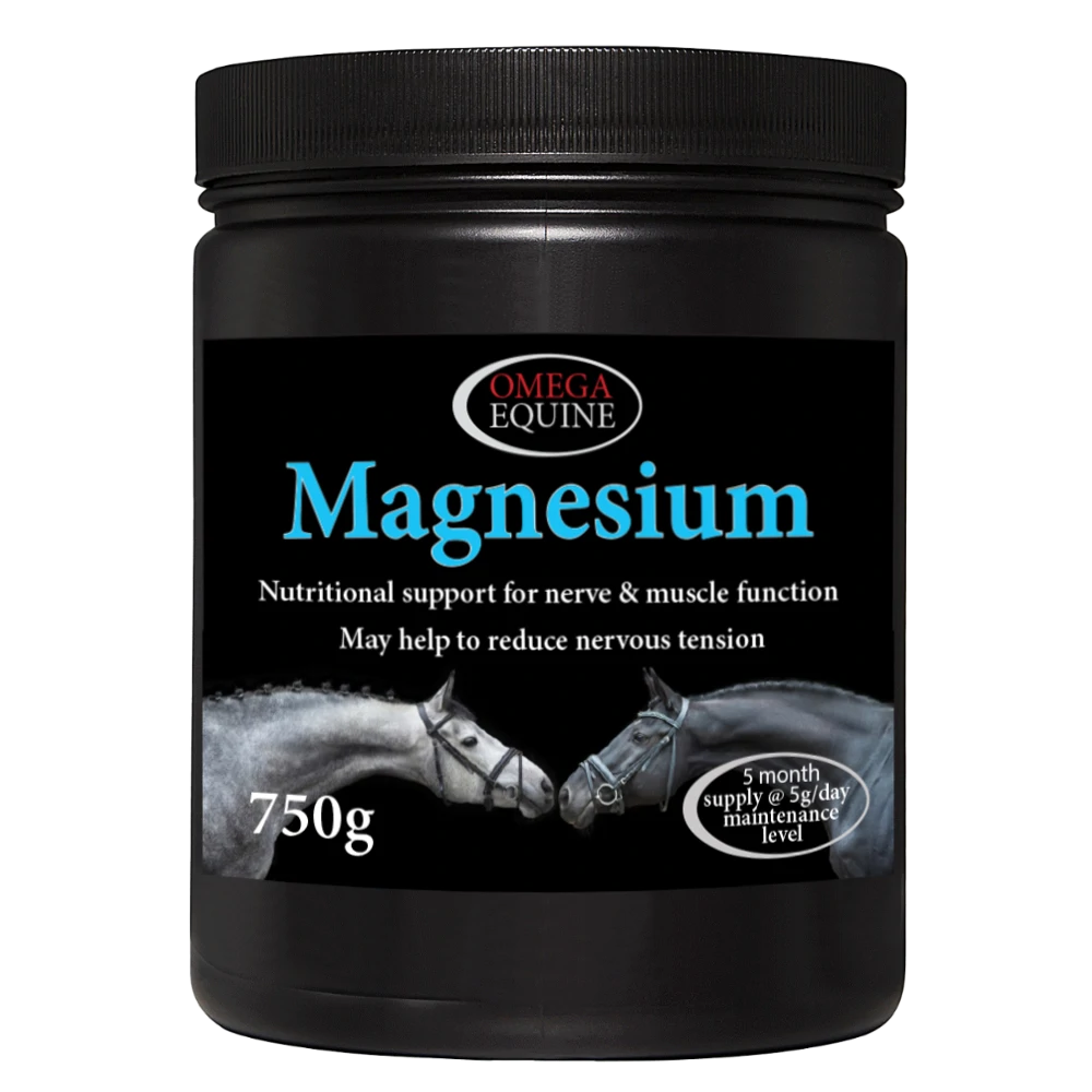 - **Replenishes Magnesium Levels:** Omega Equine Magnesium is specifically formulated to restore magnesium levels that may dip during periods of stress, such as competition, travel, or changes in routine. This ensures your horse remains balanced and energized.