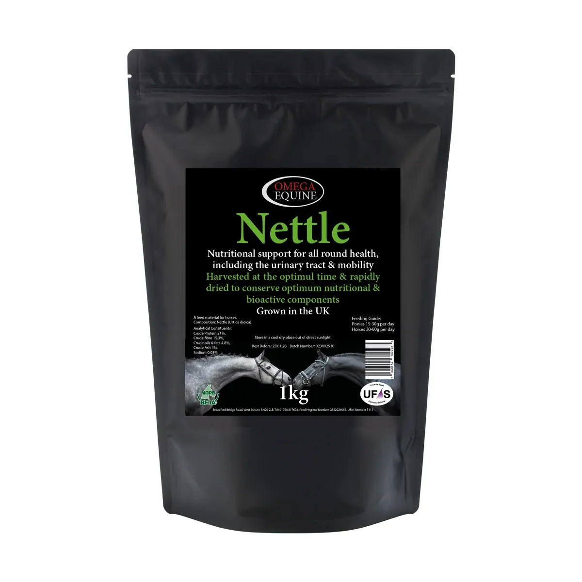 - **Nutrient-Dense Formula:** Omega Equine Nettle is brimming with essential minerals such as calcium, silica, iron, and phosphates, alongside vital vitamins B, C, and K. These nutrients work synergistically to support your horse's overall health and vitality.