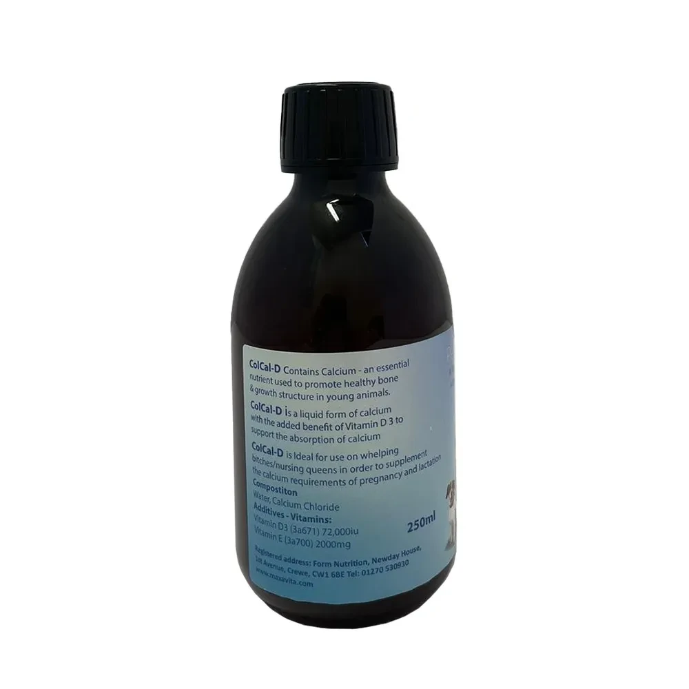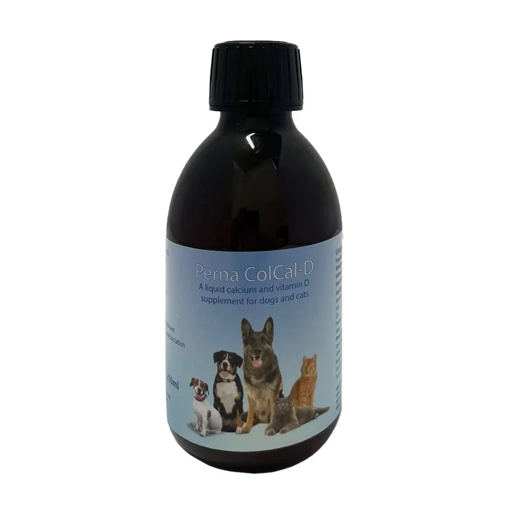 Vitamin D & Calcium - Palatable and popular with both cats and dogs, Perna Col-Cal D is a delicious Calcium & Vitamin D supplement specially designed to ideally meet the nutritional requirements of young animals, whelping bitches and nursing queens. Also suitable for administration to older animals to supplement their diet, Perna Col-Cal D is highly palatable & can simply be added to drinking water. Calcium is well known as an essential component for optimal bone growth and bone structure, hence why a Calcium-rich supplement is ideal for young, growing animals. Vitamin D improves is known to enhance the absorption of Calcium, maximising the efficacy of your supplement. Usage Rates Puppies/Dogs: 1ml per 2kg bodyweight per day Whelping Bitches: 1ml per 1kg bodyweight per day Kittens/Cats: 0.5ml per 2kg bodyweight per day Nursing Queens: 0.5ml per 1kg bodyweight per day