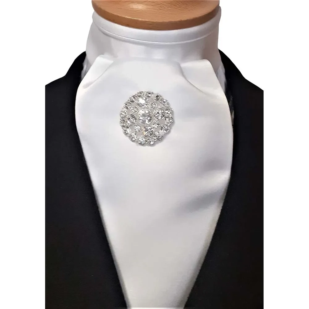 Experience elegance and functionality with the ShowQuest Estelle Stock. Crafted from special quality satin, this stock features a secure hook and loop fastening for a customizable fit, ensuring comfort during wear. The single tie adorned with a stunning gem adds a touch of sophistication, making it the perfect accessory for any equestrian outfit. Elevate your riding attire with this exquisite piece that combines style and practicality seamlessly.