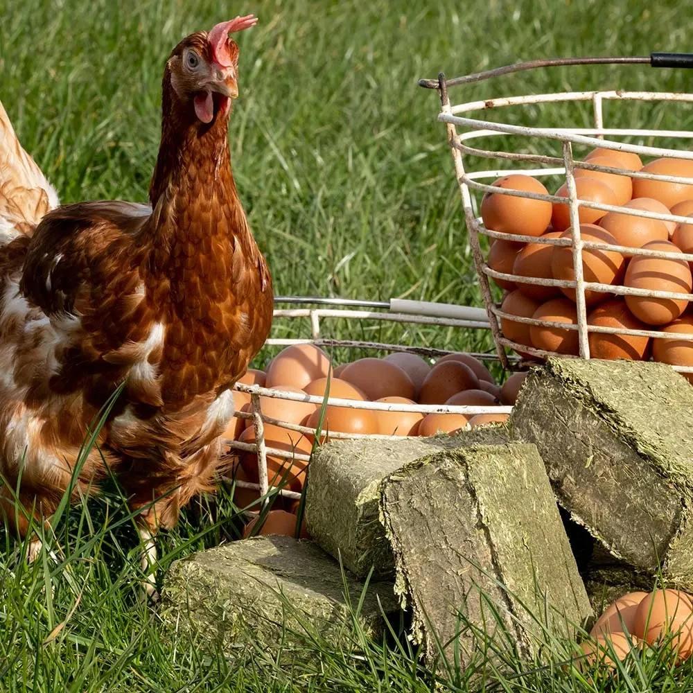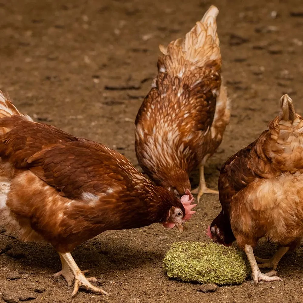 Silvermoor Alfa-Grit-Blocks are pure dried, high protein alfalfa and insoluble grit briquettes created to improve poultry welfare and digestion efficiency.Alfa-Grit-Blocks have been created to enrich hen’s environment and enhance hen welfare by encouraging natural activity, relieving stress which decreases the risk of injurious pecking.Made up of 70% alfalfa and 30% insoluble grit these ingredients are combined and pressed into shape.The resultant solid briquette retains its bright green colour which entices the birds’ interest and encourages natural foraging behaviour in flocks. Alfa-Grit-Blocks are an ideal enrichment tool providing variety and a destructive form of enrichment to prevent a potential build-up of bacteria.* Alfalfa is an excellent source of protein, highly digestible fibre and is rich in Provitamin A carotenoids to enhance yoke colour.* The insoluble grit dispersed within the block enables normal development of the gizzard, which is crucial for a healthy digestive system.* Grit can be found naturally in range however issues can arise within houses even where grit is provided on trays as some birds will gorge leaving nothing for others to ingest.* The unique design of Alfa-Grit-Blocks ensures a slow release of grit that all birds can access and ingest ensuring improved gut function and feed efficiency.* Promotes natural behaviour* Stress relieving* Good source of dietary fibre* Helps reduce feather loss* Reduce stress* 100% natural