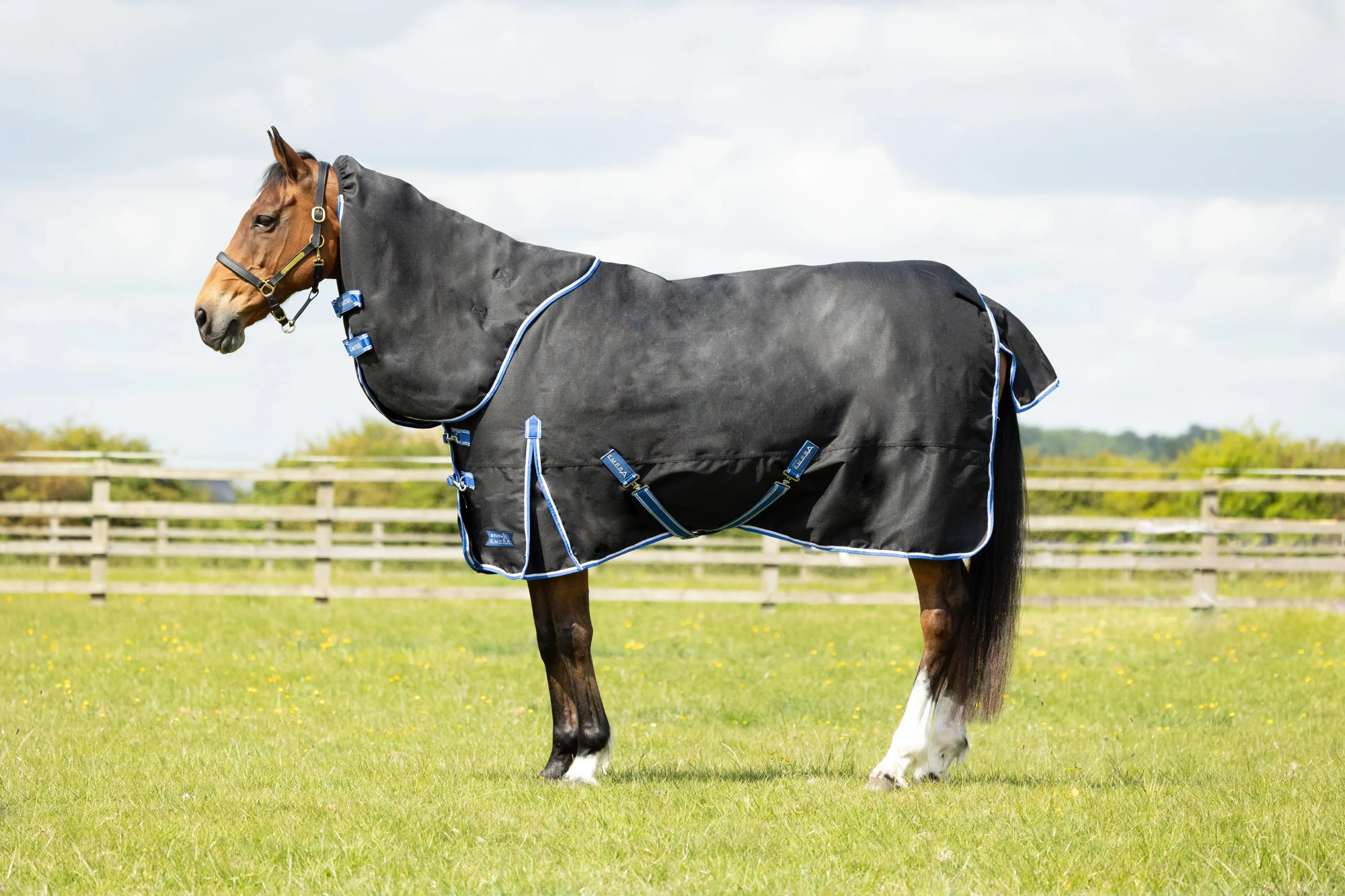 The StormX Empra Extra 200g Turnout Rug with Detachable Neck is built for comfort, protection, and versatility during colder, wetter months. With a 200g insulated fill, it offers reliable mediumweight warmth—ideal for chilly autumn and winter turnout. Constructed with a strong 1200 denier ripstop outer, this rug is both waterproof and breathable, providing long-lasting protection against the elements. The detachable neck cover allows for adaptable coverage, while the contoured poll and fleece-lined wither offer a comfortable fit that reduces rubbing and pressure points. Secure twin buckle and clip chest fastenings, adjustable cross surcingles, and a large tail flap help keep the rug in place, and the addition of adjustable leg straps ensures a snug, secure fit even during active turnout. Combining durability, thoughtful design, and all-weather performance, this rug is a dependable choice for keeping your horse warm, dry, and comfortable all season long.