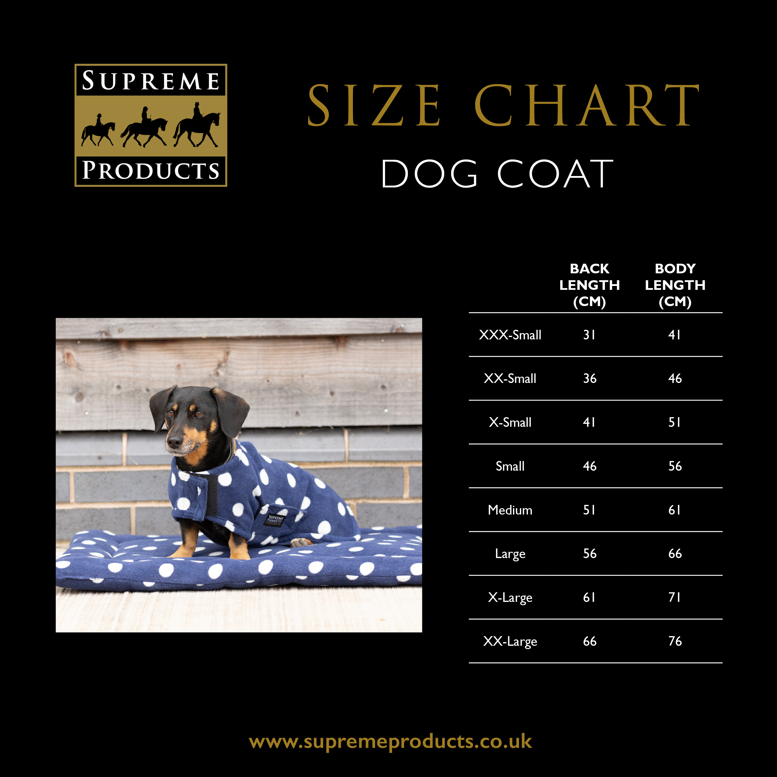 Keep your furry friend snug and stylish with the Supreme Products Dotty Fleece Dog Coat. Crafted from ultra-soft fleece, this coat ensures warmth and comfort whether your dog is in the lorry or playing in the yard. Designed with practicality in mind, it features a convenient lead hole and adjustable easy-touch tape fastenings on the chest and underside for a secure fit. Plus, with matching items available, your dog can be the trendsetter of the pack. Best of all, it's machine washable for effortless care. Don't miss out on this essential addition to your dog's wardrobe!
