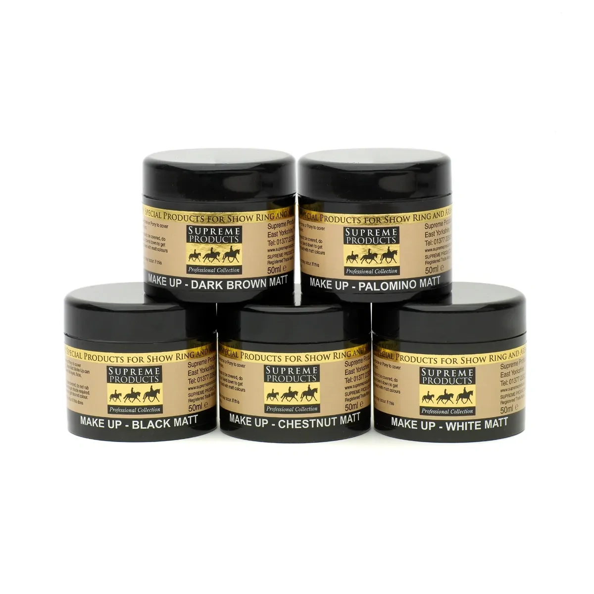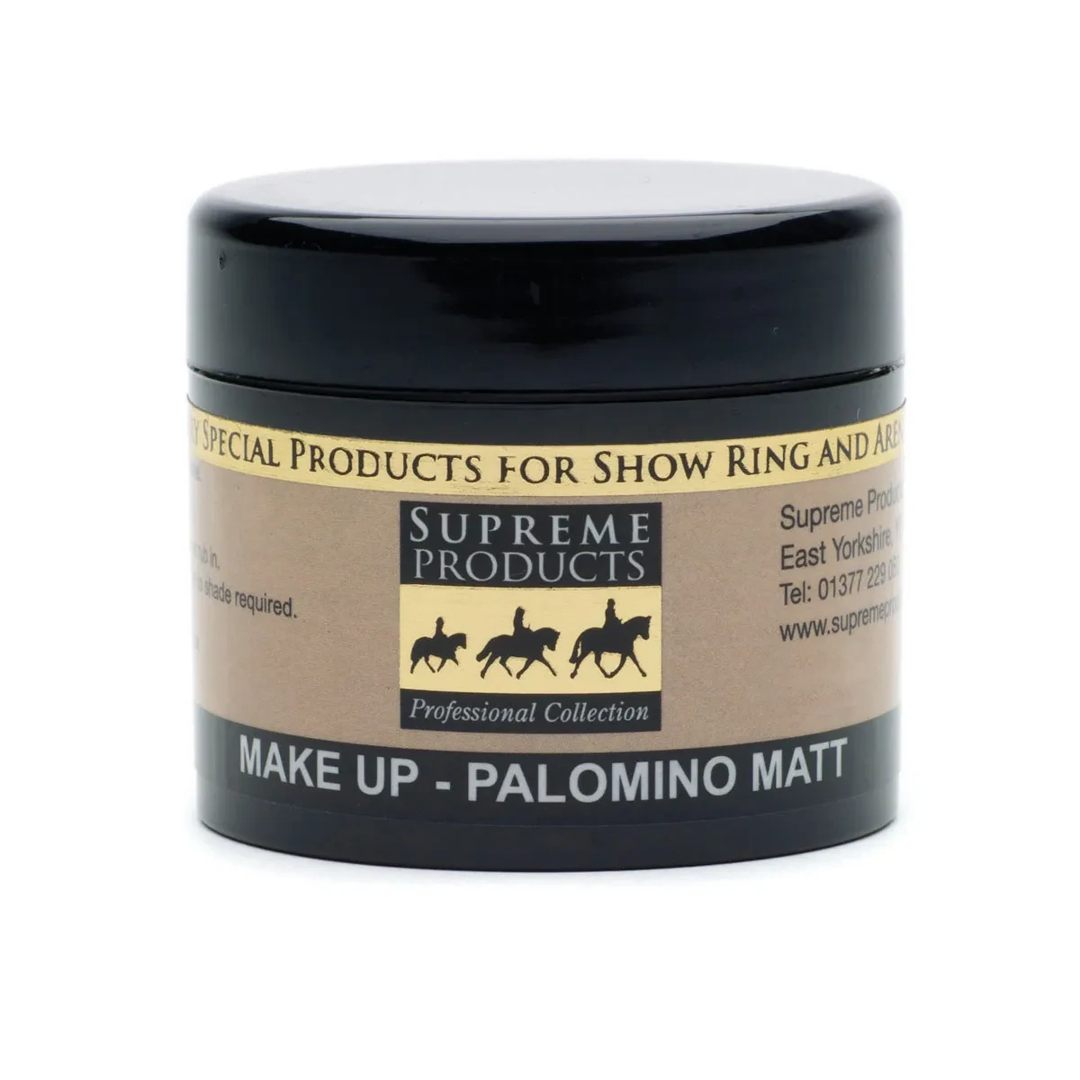 Use Supreme Products Black Matt Make Up to cover over marks, scars and unwanted light coat hairs. This can be used - in conjunction with Supreme Highlighter Gloss; Highlighter Gel or Glistening Oil - around the eyes and on the face to add definition and glamour. Use this product sparingly. This product does not contain dye. To get the desired colour / shade, it may be necessary to mix this with other colours in the range.