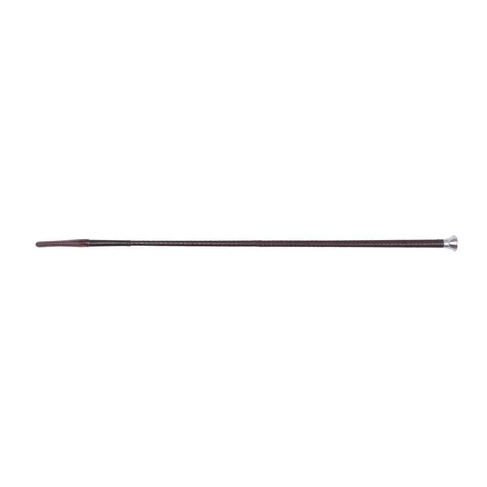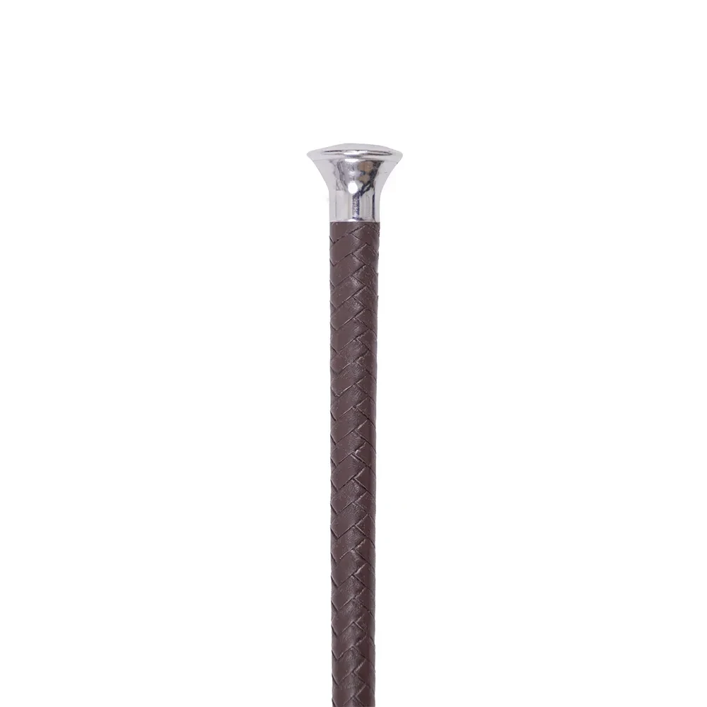Elevate your showing ensemble with the Supreme Products Plaited Show Cane, a stunning accessory crafted from rich dark brown leather. This exquisite cane features a sophisticated silver mushroom top and a practical leather keeper, ensuring both style and functionality. Made in the UK, it is the perfect finishing touch to enhance your appearance in the ring, combining elegance with quality craftsmanship.