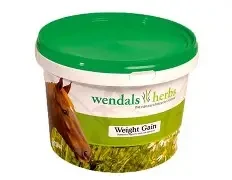 Wendals Weight Gain is an essential supplement designed specifically for younger horses and those recovering from illness. This carefully formulated blend of herbs not only stimulates appetite but also supports optimal digestive function, ensuring your horse maintains a healthy condition as part of a balanced diet. Give your equine companion the nutritional boost they need to thrive and regain their strength with Wendals Weight Gain.