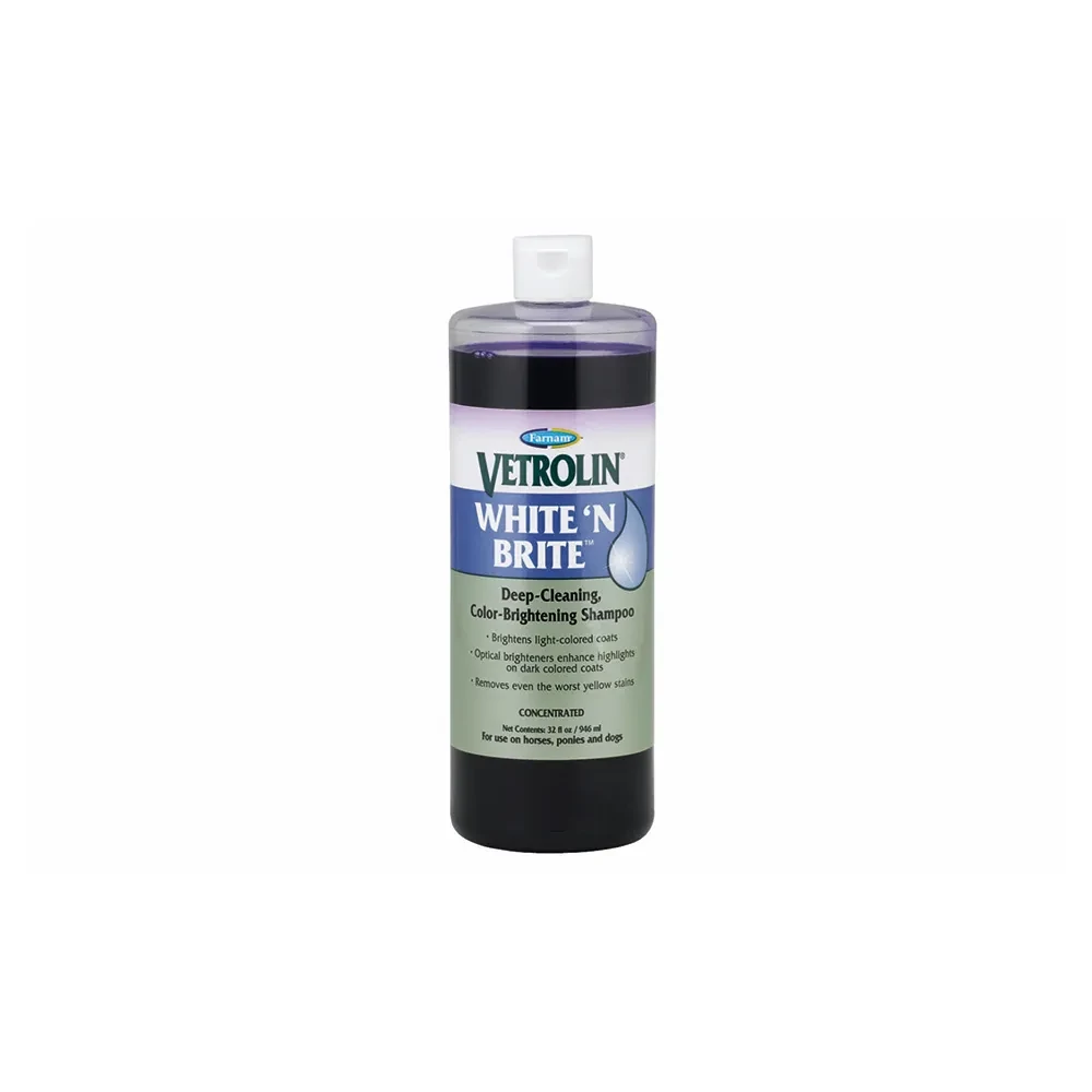 Elevate your grooming routine with White 'N Brite Shampoo, specially formulated to enhance the brilliance of white and light-colored coats. Infused with coconut oil derivatives and optical brighteners, this shampoo effectively tackles even the toughest stains, ensuring a radiant finish. Suitable for use with both hot and cold water, it leaves your horse's mane, tail, and coat looking vibrant and healthy, making it an essential addition to your equine care arsenal.